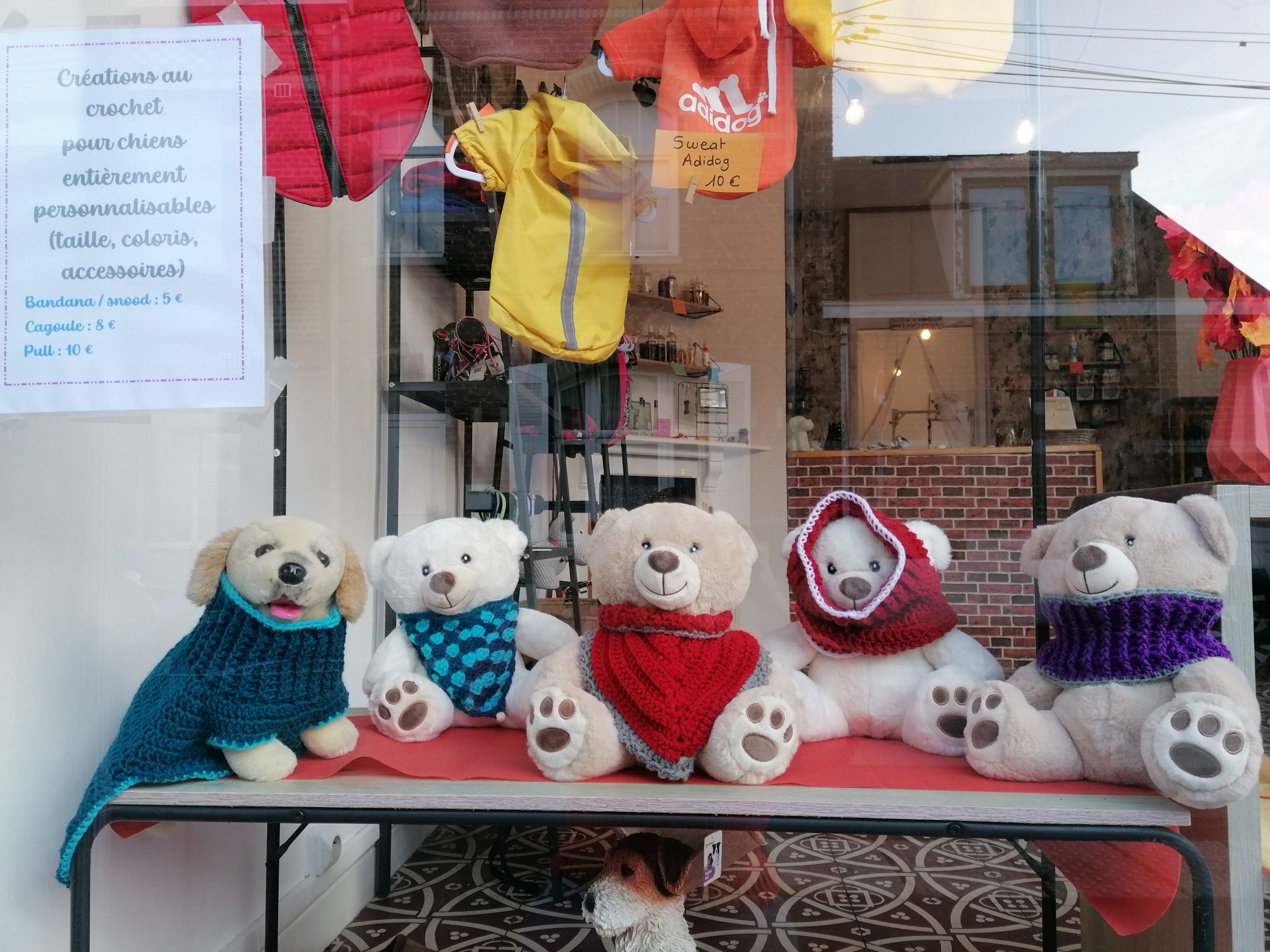 En plus de nos toilettages animaux de qualités, nous proposons également des créations au crochet pour les chiens.